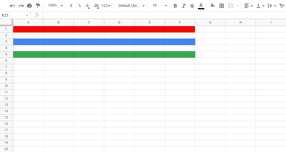 Colors are applied to cells by using the "Fill color" function.