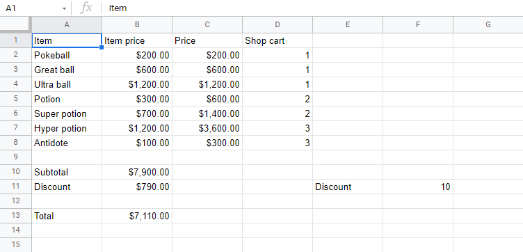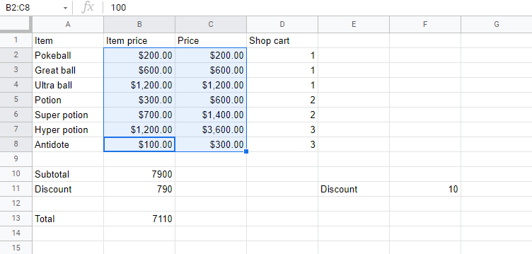 In the example we have cells that represent prices, which can be formatted as Currency.
