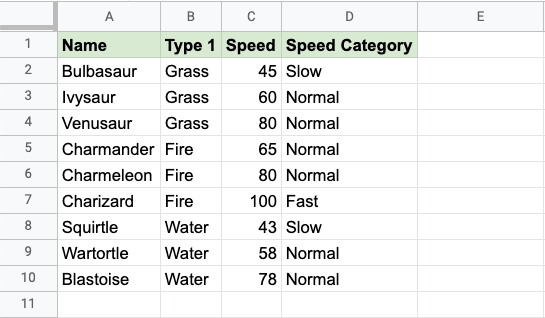 Make categories for how fast the Pokemon are: